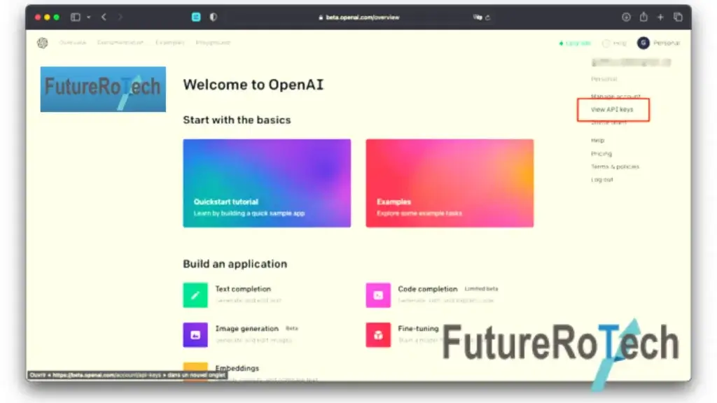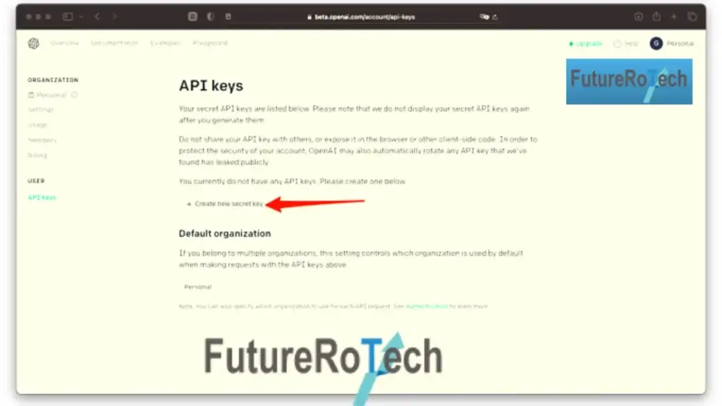 - Once you have signed in to your OpenAI account, generate a GPT-3 API key.